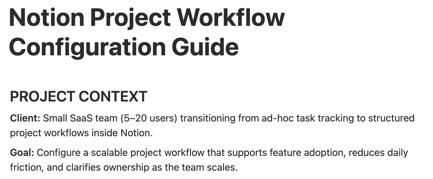 A structured workflow configuration guide designed for teams transitioning from ad-hoc task tracking to a scalable, role-aware project system.