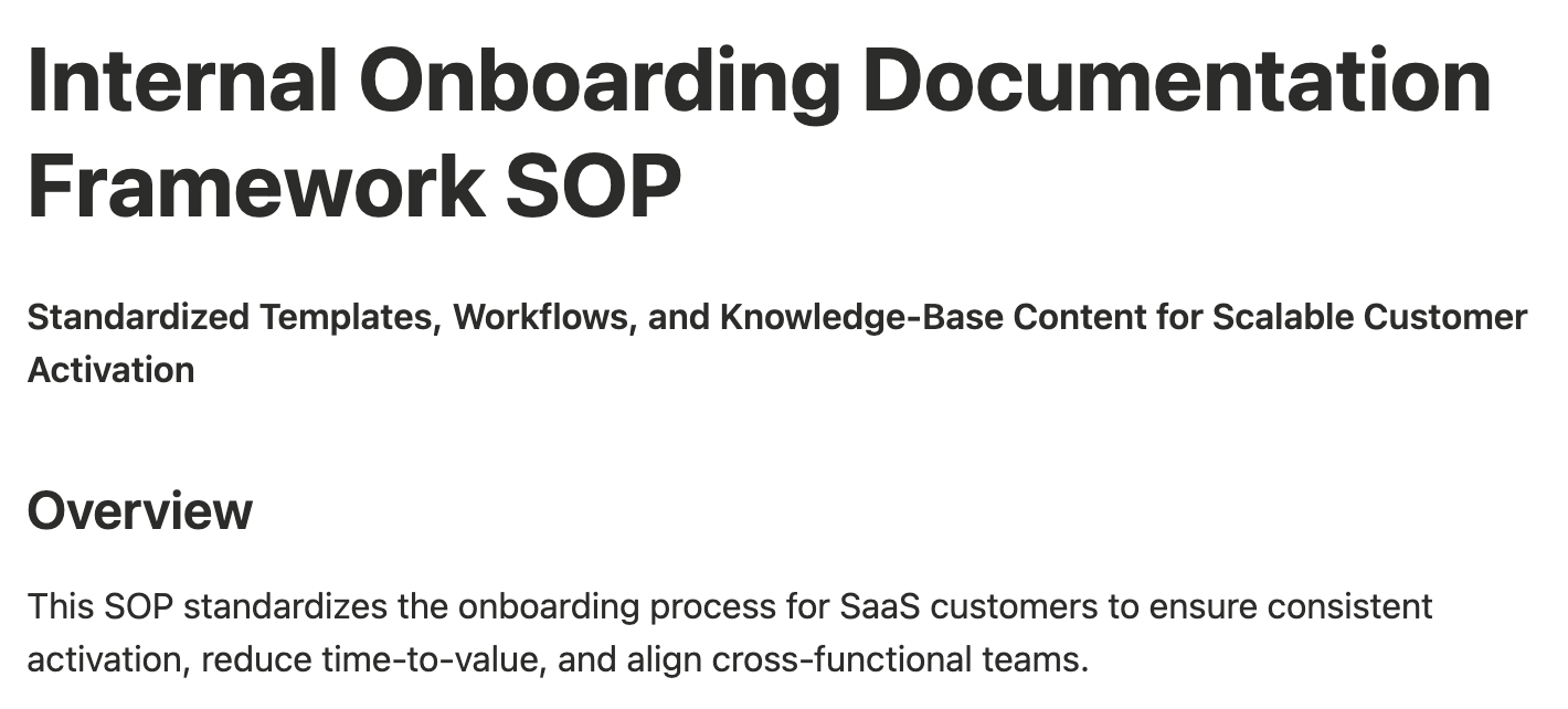 Result: Reduced onboarding variability, improved cross-team alignment, and faster time-to-value for new customers.